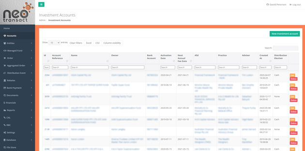 Internal FinTech site aggregating investor managed fund holdings.